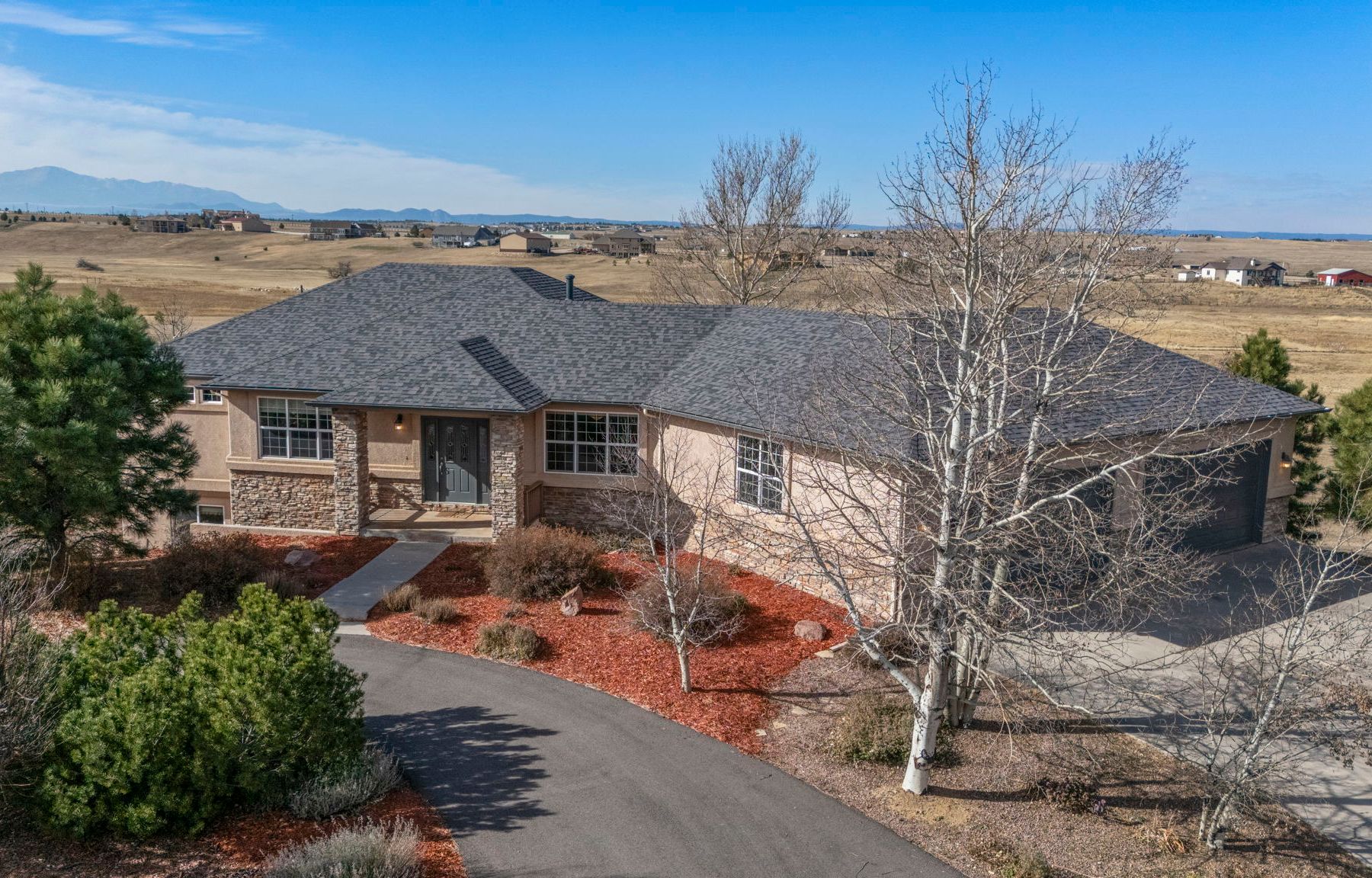 Your little bit of paradise with incredible Pikes Peak Views! 3,962 sq.ft. ranch floor plan with 4-car garage. 4 bedrooms, all with adjoining baths. Walkout basement with garden level windows throughout for a light and bright feel. 5.07 acres adjoins equestrian easement and neighborhood equestrian trail system. Truly a beautiful home and property!