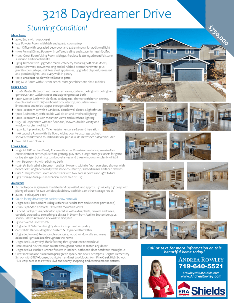 Category: Listings For SaleTags: 3218 Daydreamer Drive, Andrea Rowley Real Estate, andrearowley.com, Home For Sale Colorado Springs, North Fork at Briargate neighborhood