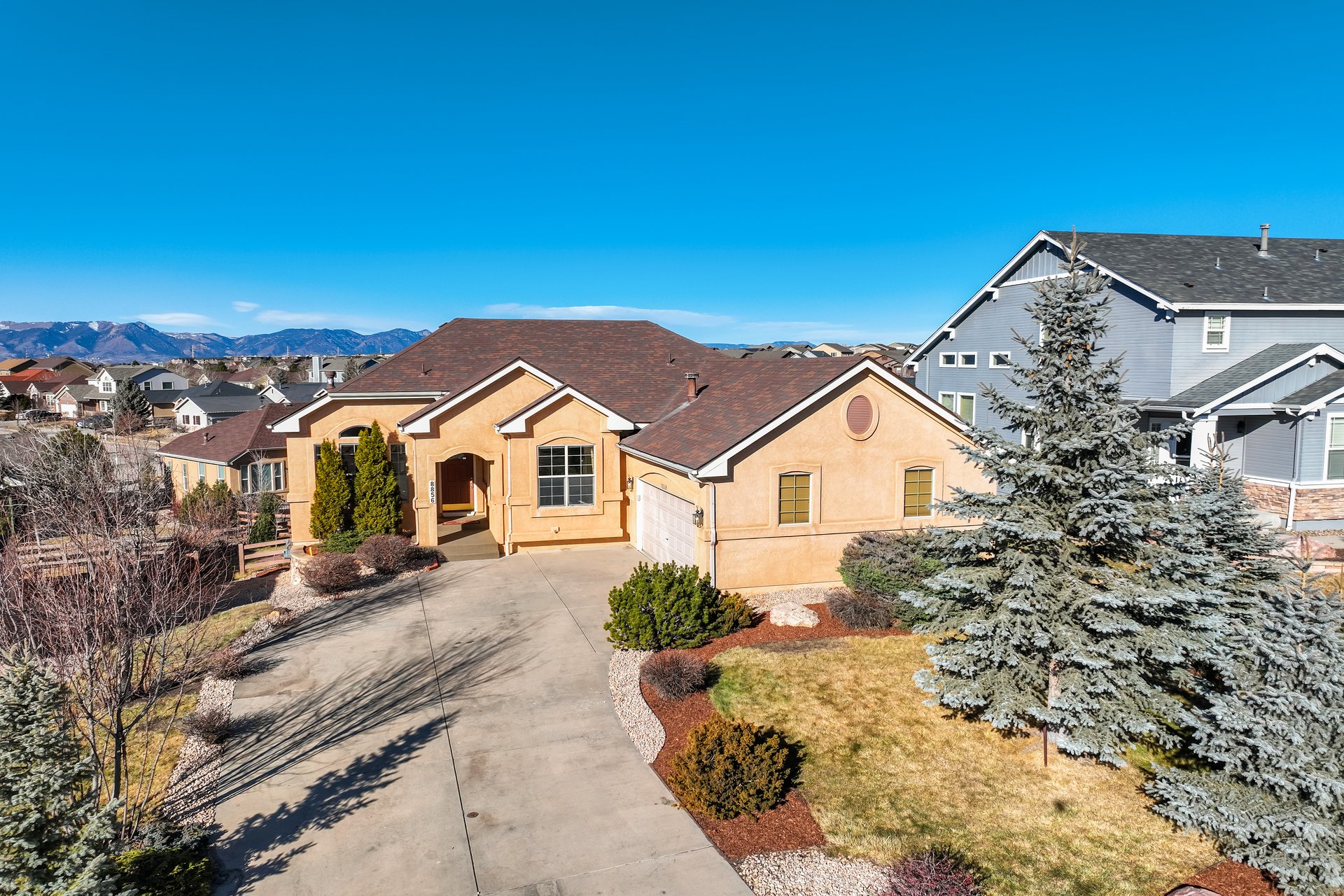 Your little bit of paradise with incredible Pikes Peak Views! 3,962 sq.ft. ranch floor plan with 4-car garage. 4 bedrooms, all with adjoining baths. Walkout basement with garden level windows throughout for a light and bright feel. 5.07 acres adjoins equestrian easement and neighborhood equestrian trail system. Truly a beautiful home and property!